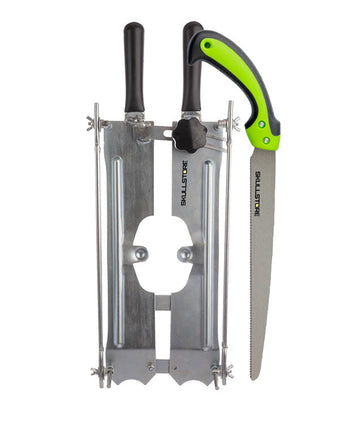 Das neue, besonders robuste Sägeblatt sorgt für noch höhere Qualität: Es bleibt länger scharf und ermöglicht einen gleichmäßigen, sauberen Schnitt, der in den meisten Fällen kein Nachschleifen auf der Schleifmaschine erfordert. Ihre Trophäe passt dank der exakten Einstellmarkierungen und der verstellbaren Schnittwinkel präzise auf das Schild.
