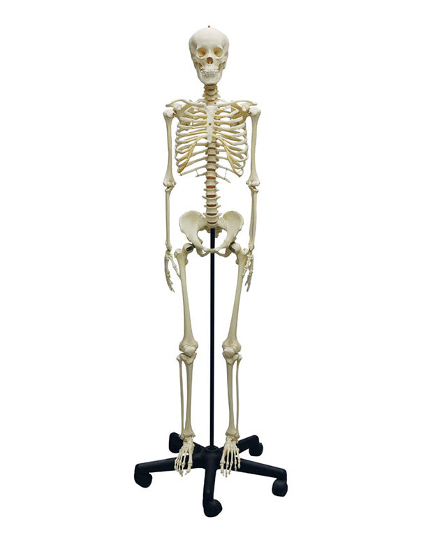 Gli scheletri di adolescenti di prima classe sono molto rari nelle collezioni didattiche. Dopo una lunga ricerca, abbiamo trovato un esemplare eccellente. Lo scheletro in via di sviluppo differisce notevolmente da quello di un adulto: i numerosi centri di ossificazione e le placche di accrescimento alterano drasticamente l'aspetto delle singole ossa. Imparare a valutare e misurare l'invecchiamento scheletrico è un'abilità importante per gli studenti di anatomia. Per questo motivo, questo modello è un'aggiunta inestimabile a qualsiasi collezione didattica. Poiché gli scheletri di adolescenti sono raramente accessibili, questo scheletro è anche di grande aiuto per gli scienziati forensi e gli antropologi nella valutazione dei singoli casi.Include supporto.