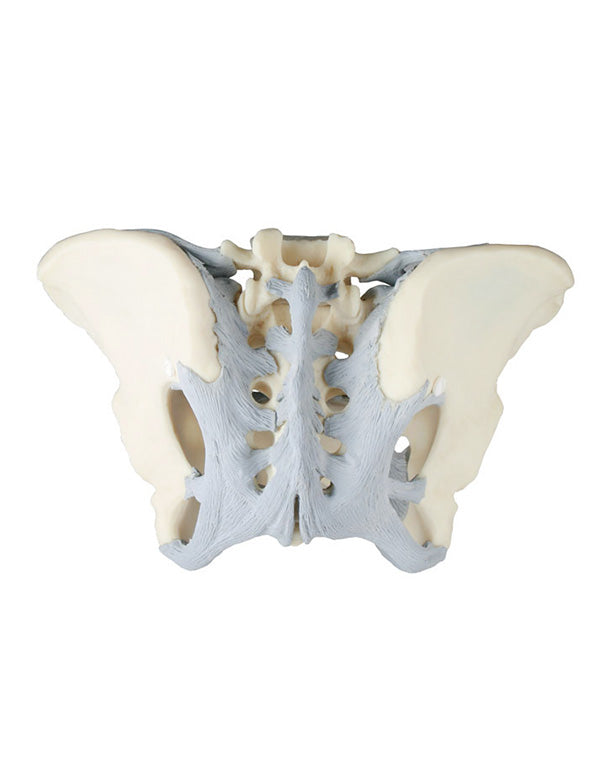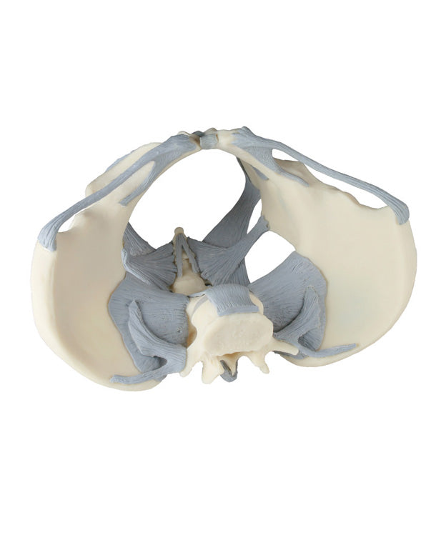 Vrouwelijk bekkenmodel met ligamenten. Dit niet-demonteerbare model illustreert duidelijk de locatie en functie van de ligamenten in het vrouwelijk bekken. Natuurlijke grootte.