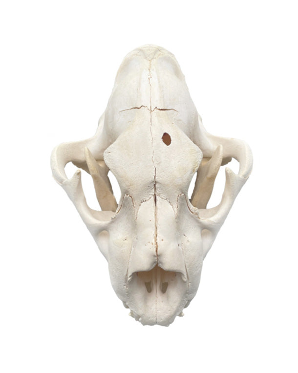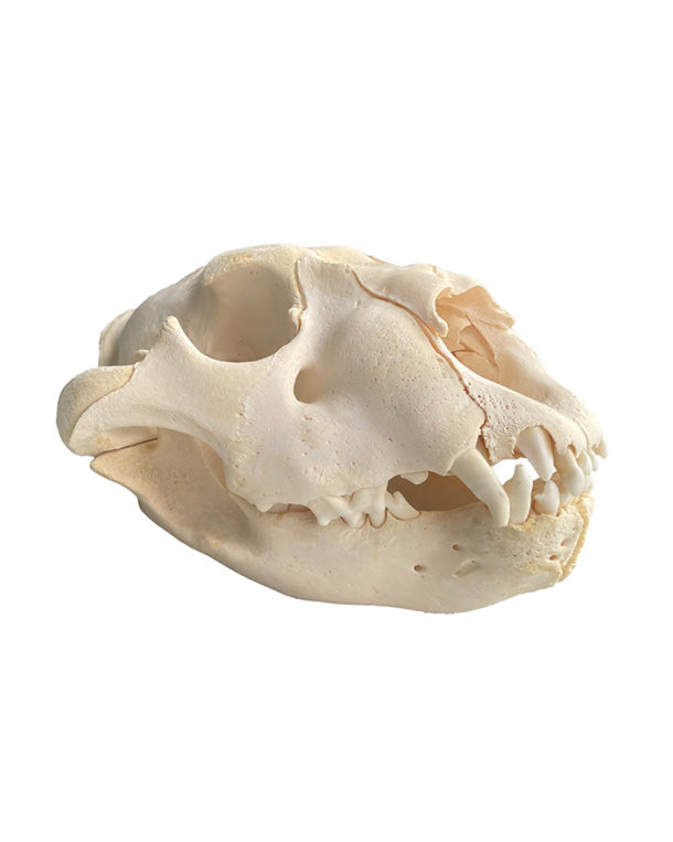 Eine junge Raubkatze im Zahnwechsel: Löwen sind als geschützte Tierart gemäß CITES II klassifiziert und stehen unter Artenschutz. Unsere Exemplare stammen aus Zoos oder aus Importen mit bestätigter Herkunft. Diese Tiere sind entweder aufgrund von Altersschwäche oder durch natürliche Unfälle verstorben. Dieser Junglöwe könnte beispielsweise von einem Büffel oder einer größeren Antilope angegriffen worden sein. Das Loch im Schädel stammt nicht von einem Schuss, sondern von einem spitzen Gegenstand wie einem Horn. Ein Schuss hätte den Schädel stärker beschädigt.