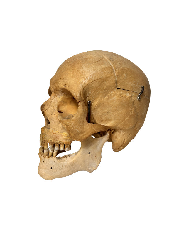 Komplett restaurierter, sehr schöner echter menschlicher Schädel. Zähne komplett. Aufwändig präparierter Schädel zum Zerlegen mit diversen Klappen zum Öffnen.