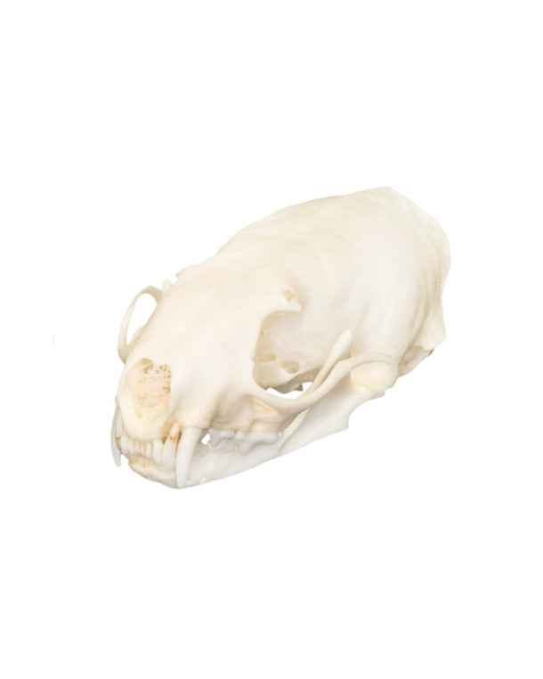 Dieses Tier ist bekannt für seine Lebensweise in der Nähe von Gewässern, wo es sich von Fischen, Krebsen und anderen kleinen Tieren ernährt. Der hier angebotene Schädel stammt aus Nordamerika und ist ein exzellentes Beispiel für die Anatomie des Europäischen Nerzes.