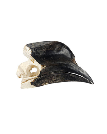 Der Schädel des Schwarzen Nashornvogels ist besonders durch seinen beeindruckenden Schnabel wie alle Nashornvögel mit einem auffälligen Horn, dem Casque, gekennzeichnet. Dieses Horn verleiht dem Vogel sein charakteristisches Aussehen und dient vermutlich der Verstärkung von Rufen und der Paarungssignalisierung. Die Schnäbel dieser Vogelart sind nicht nur groß und farbenfroh, sondern auch funktional, da sie beim Nahrungserwerb und als Werkzeug genutzt werden. Im Gegensatz dazu ist der Casque des Schwarzen Nashornvogels hohl und leicht, was trotz seiner Größe eine uneingeschränkte Flugfähigkeit ermöglicht. Diese anatomischen Besonderheiten unterstreichen die Bedeutung der Schnabelform für Kommunikation, Fortpflanzung und Überleben in unterschiedlichen Lebensräumen.