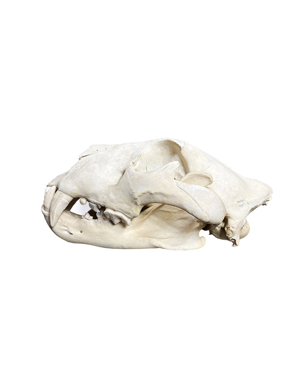 Eine Raubkatze mit massivem Schädel und Gebiss. Tiger gelten als bedrohte Tierart und stehen unter Artenschutz gemäß CITES III. Unsere Exemplare stammen aus Zoos oder aus Importen mit bestätigter Herkunft. Diese Tiere sind entweder an Altersschwäche oder durch natürliche Unfälle verstorben. Anstatt die Kadaver zu entsorgen, kauft SWISSskulls diese Exemplare auf und verarbeitet sie zu Sammlerstücken oder für Liebhaber, die von solch großen Katzen träumen. Der Schädel selbst ist meist gar nicht so teuer, jedoch kommen enorme Transport-, Veterinäramts- und sonstige Kosten hinzu, bevor der Schädel verkaufsbereit ist.
