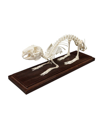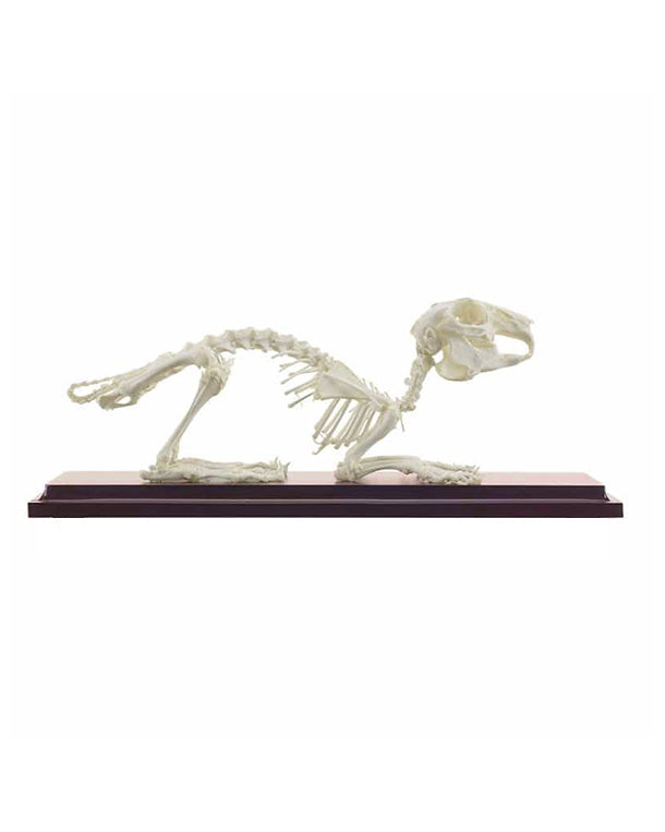 Das Kaninchenskelett zeigt den vollständigen Knochenbau eines durchschnittlich großen Kaninchens. Es besteht aus echten Knochen, ist auf einem stabilen Holzsockel montiert und wird zum Schutz während des Transports mit einer durchsichtigen Kunststoffhaube geliefert.