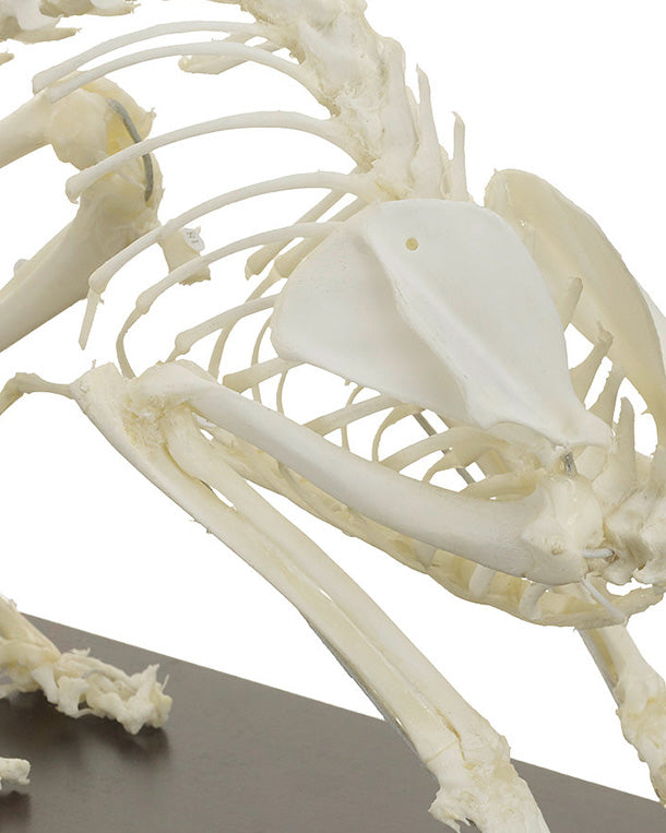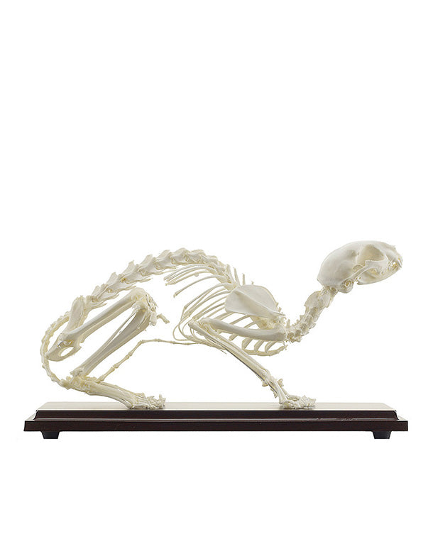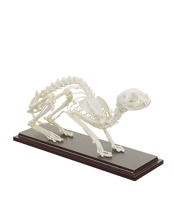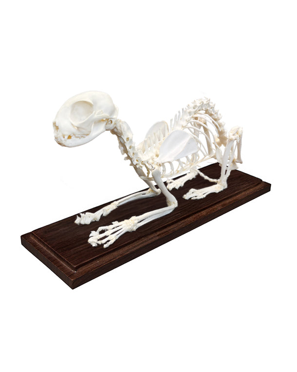 Das Katzenskelett zeigt den vollständigen Knochenbau einer durchschnittlich großen Hauskatze. Das Katzenskelett besteht aus echten Knochen, ist auf einen schwarzen Holzsockel montiert und wird mit einer Transporthaube zum Schutz der natürlichen Knochen geliefert.