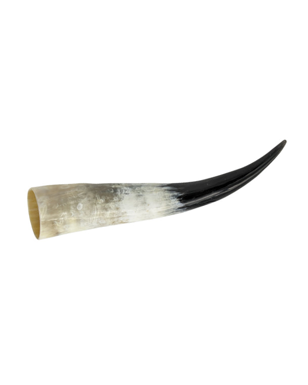 Als Naturprodukt ist jedes Trinkhorn ein Unikat. Die charakteristische schwarze Farbe wird oft durch Weiß- und/oder Brauntöne ergänzt, was jedem Horn einen einzigartigen Look verleiht.