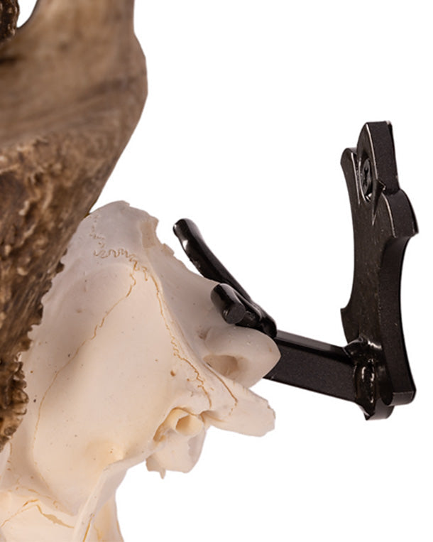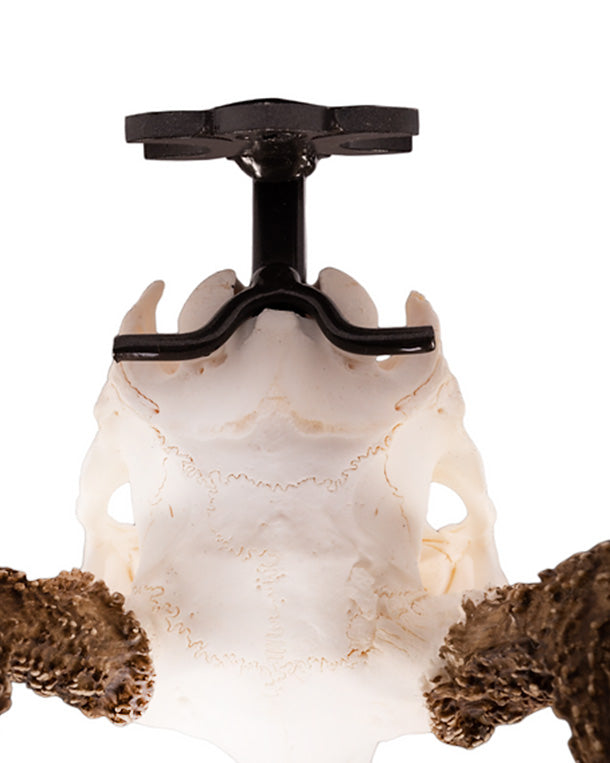 Diese äußerst stabile Halterung für Hirschschädel besteht aus einer 3/16-Zoll-Stahlbodenplatte. Sie ist einfach mit einer Schraube zu montieren und erfordert keine Anpassungen am Schädel.