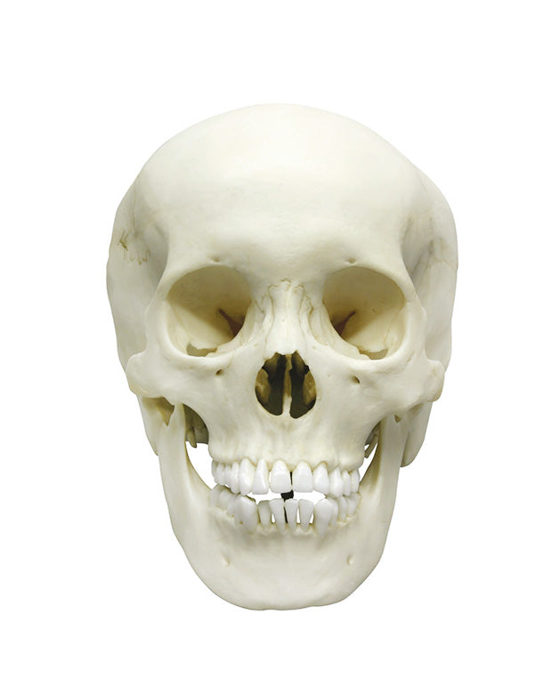 Erstklassiger Naturabguss des Schädels einer weiblichen Heranwachsenden in beeindruckend guter Detailwiedergabe. Durch das sehr aufwändige Fertigungsverfahren werden auch kleinste Details wiedergegeben und das Modell wirkt in Optik und Haptik wie ein echter Schädel. Die Detailstrukturen sind gefärbt, so dass diese noch besser zu erkennen sind und der Eindruck eines echten Schädels noch unterstrichen wird. Auf Grund dieser hochwertigen Verarbeitung ist dieser Schädel erst auf den zweiten Blick von einem Naturschädel zu unterscheiden. Das Modell ist zweiteilig.