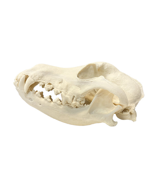 Dieser detailgetreue Hundeschädel zeigt die charakteristischen Merkmale eines Haushundeschädels: den ausgewogenen Oberkiefer, die typischen Zahnstrukturen sowie die ausgeprägten Nasenmuscheln. Er eignet sich ideal, um allgemeine anatomische Strukturen eines Haushundes zu studieren und die Vielseitigkeit der Schädelanatomie zu verstehen.