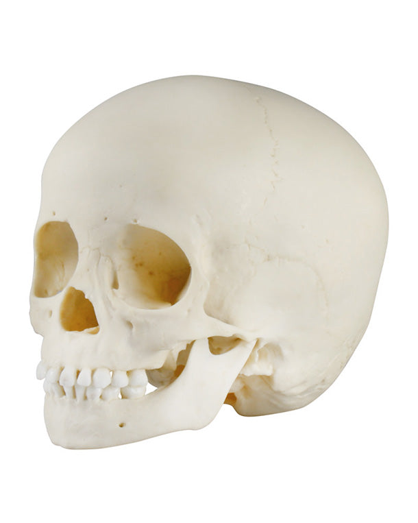 Erstklassiger Naturabguss des Schädels eines 3-jährigen Kindes in beeindruckend guter Detailwiedergabe. Der Schädel zeigt eine Vielzahl von Schaltknochen (Wormsche Knochen) im Bereich der Lambdanaht sowie ein Os epiptericum, ein Schaltknochen im Bereich des Pteriums.