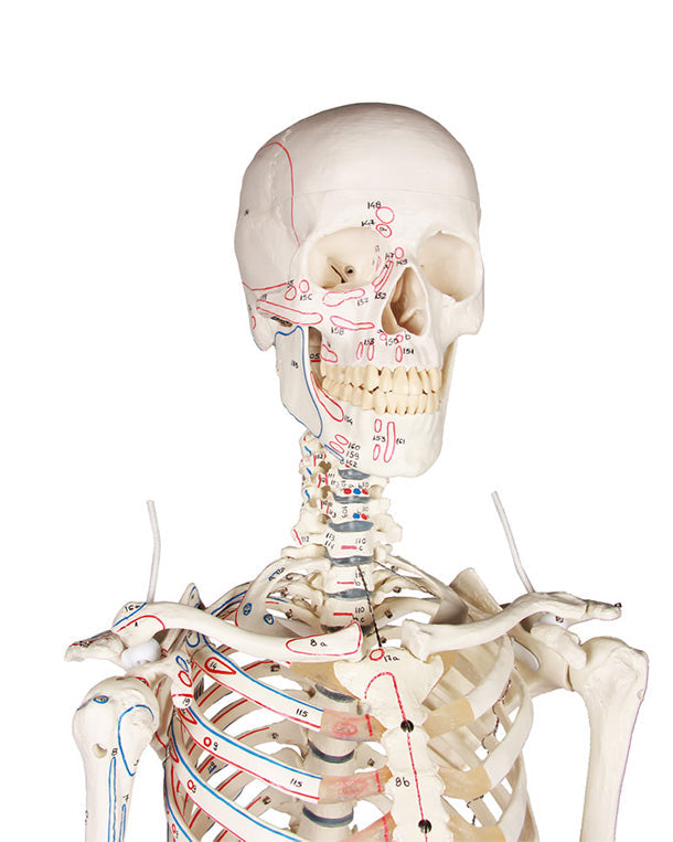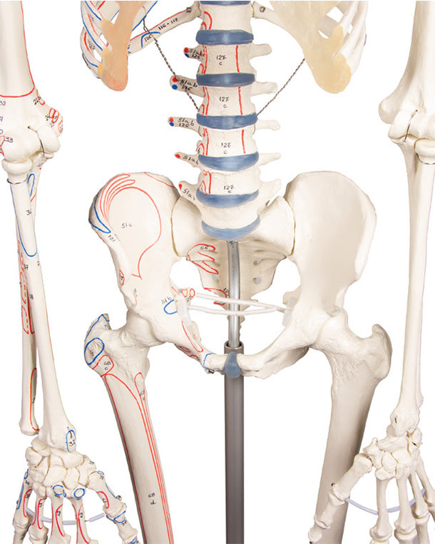 Replikat Skelett „Arnold“ mit Muskelmarkierungen