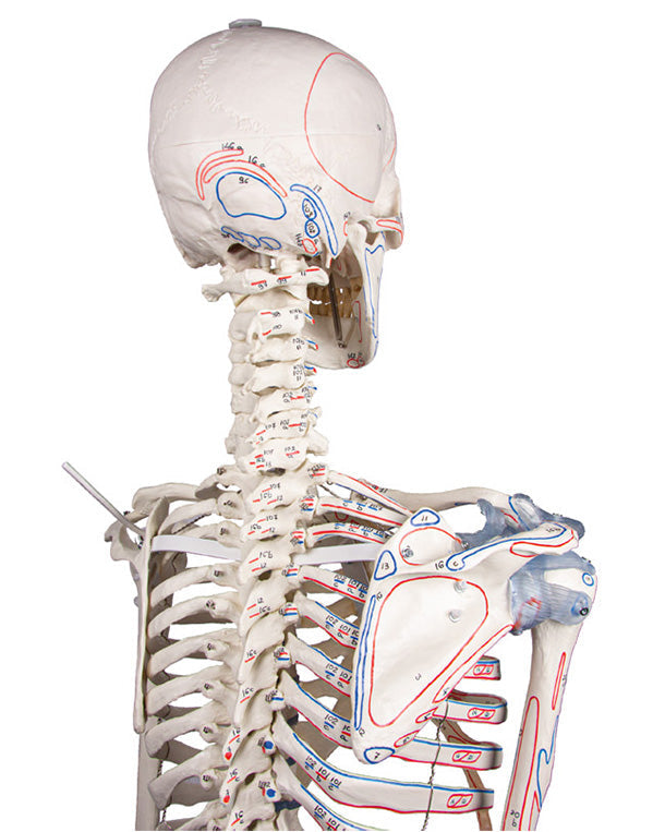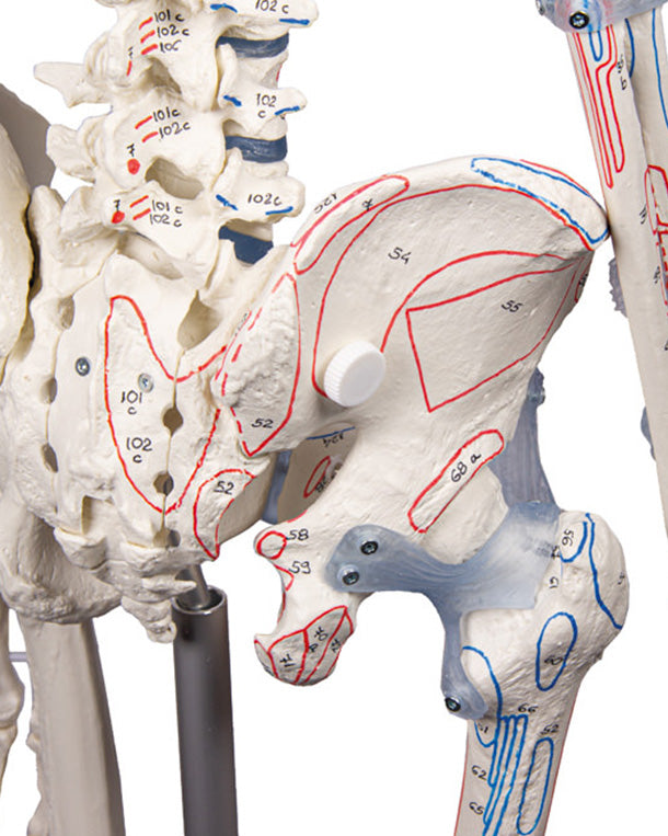 Replikat Skelett „Bert“ mit Muskelmarkierungen und Bandapparat