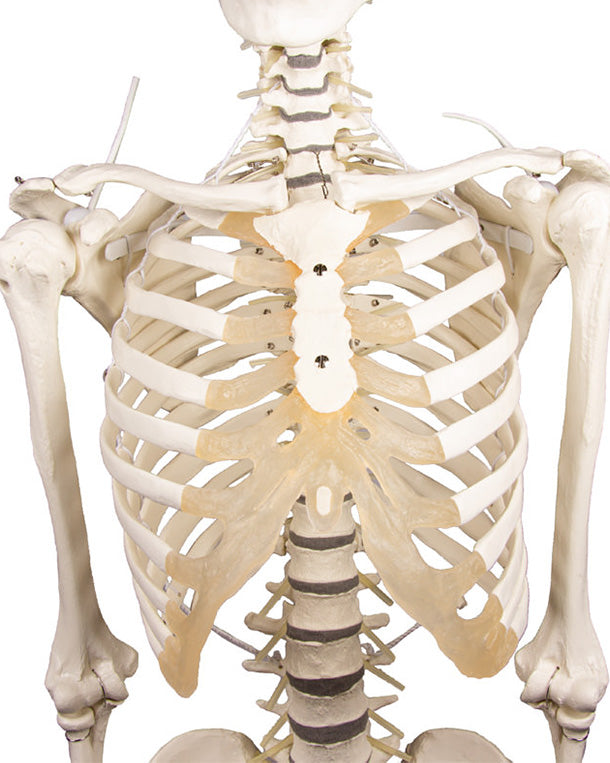 Die Schulterblätter sind so montiert, dass sie sich bei Armbewegungen mit bewegen können. Hierdurch kann der natürliche Bewegungsablauf gezeigt werden.