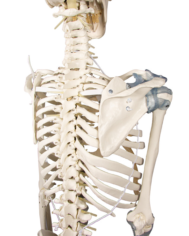 Die Schulterblätter sind so montiert, dass sie sich bei Armbewegungen mit bewegen können. Hierdurch kann der natürliche Bewegungsablauf gezeigt werden.